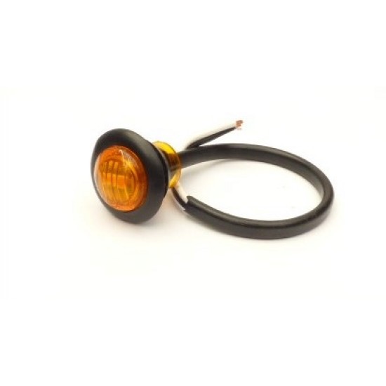 Waterproof 12V round amber lamp complete with fixing grommet for push fitting. Requires 20mm fixing hole. Incorporates 3 x LEDs. 28mm diameter inc. grommet.
