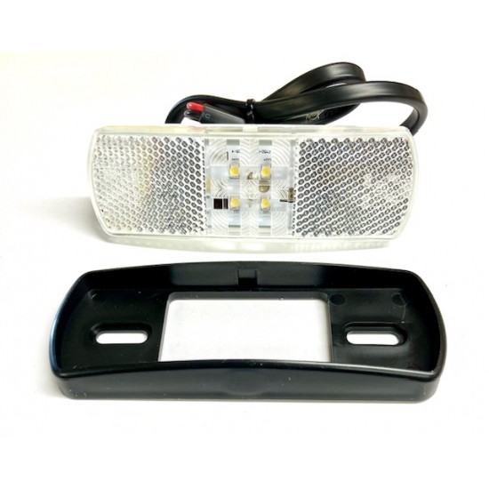 Clear front LED marker light 9-33V, supplied with flush mounted bracket. 4 x LED with reflex reflector. IP67 Rated.