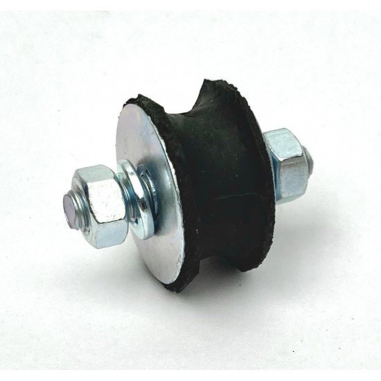 Exhaust mount bobbin with 5/16" UNF threads. Size: 34mm dia x 18mm. Includes nuts and spring washers.
