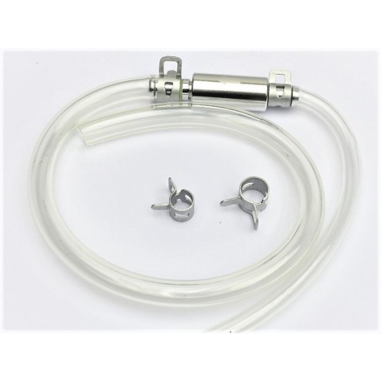 One way valve and connecting hose. Prevents old fluid from re-entering brake system without repeatedly opening and closing bleed nipple.